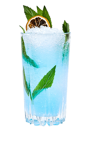- Once suitably muddled, pour the mixture over the Alizé Bleu Passion Liqueur and rum.